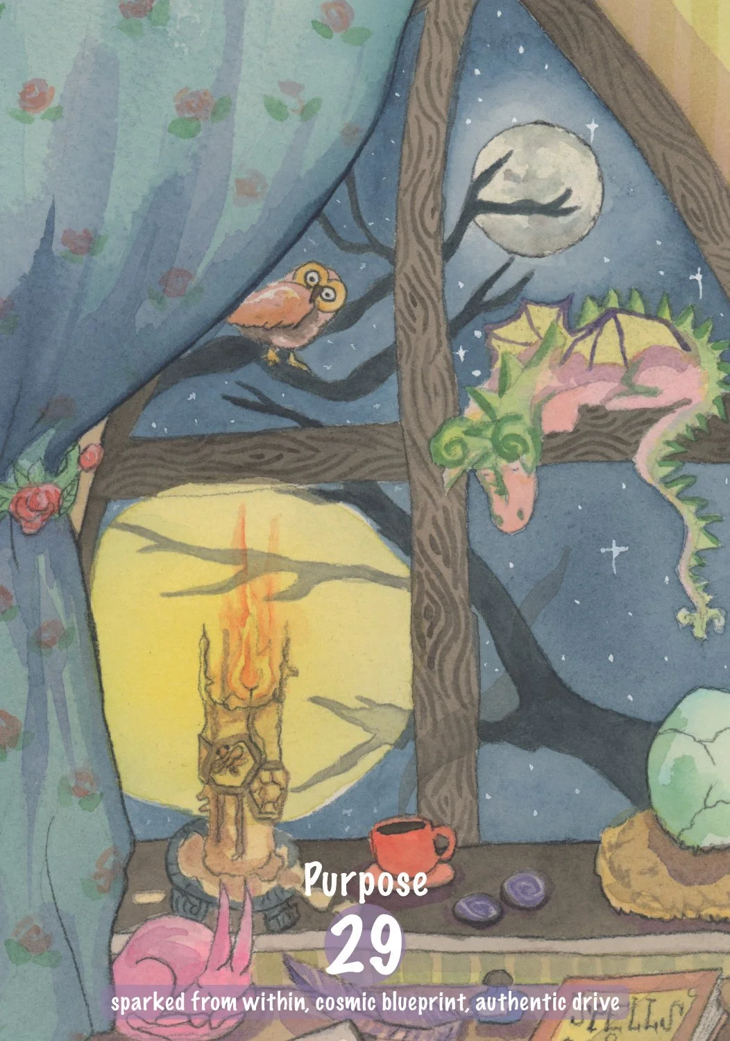 45 handillustrierte Orakelkarten (Aquarell & Tusche)